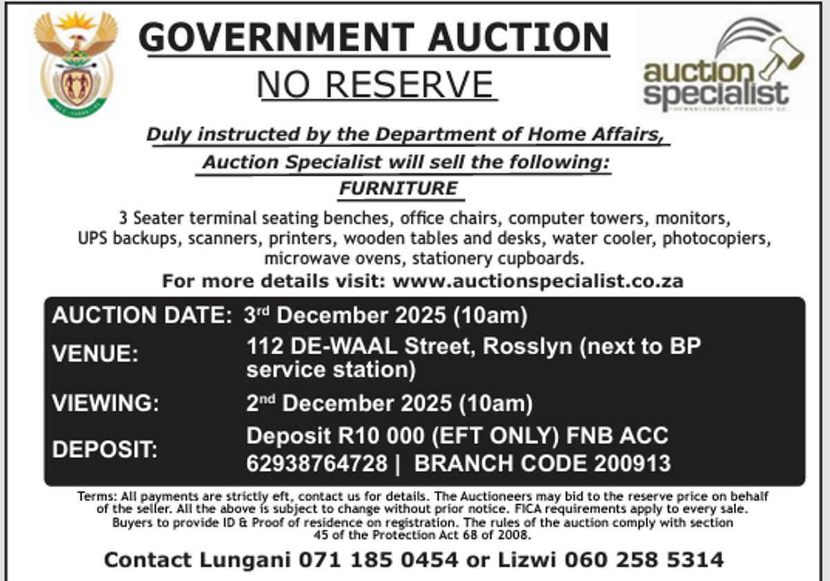 📢 PUBLIC AUCTION – DEPARTMENT OF HOME AFFAIRS